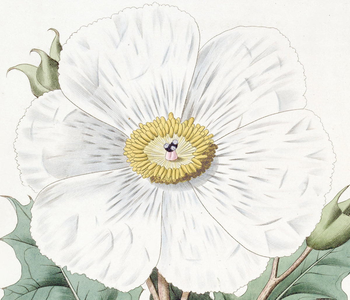 Robert John Thornton · 1807 · Elegant hyacinths botanical print with pale blooms and sculptural green leaves